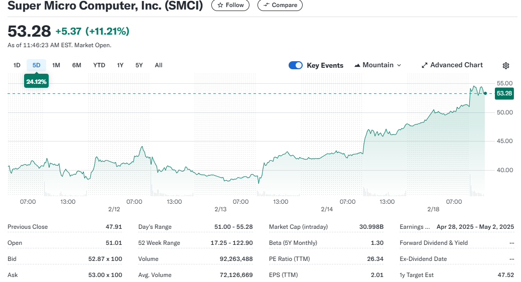 SMCI up to $55.80