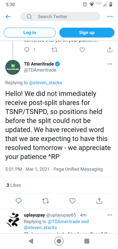 Quick question. TSNP is TSNPD now? And with the 4/1 reverse split, that means if I had 1000 TSNP shares, I'd now have 250 shares of TSPND at $6.00 per share now basically?
