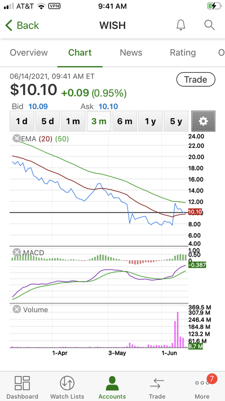 Sitting on 1,200 shares of WISH at 11.31, no idea what I'm doing