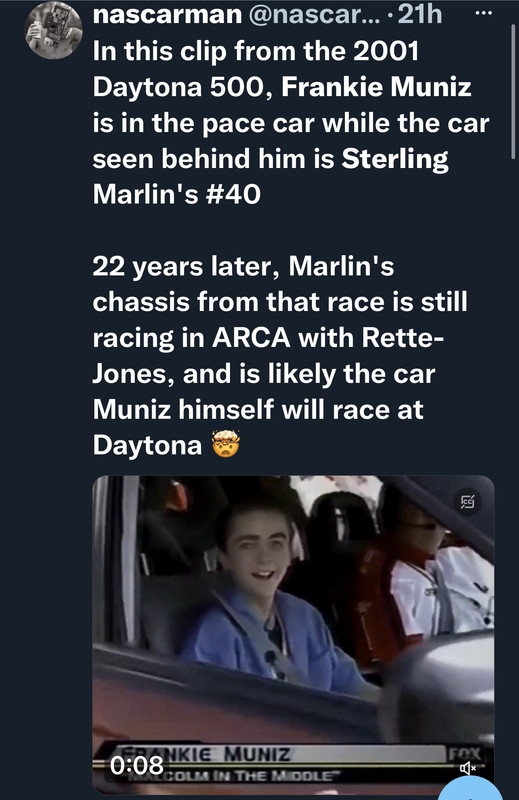 Actor Frankie Muniz is racing full time in ARCA this year. He’s raced before so that may be fun to watch throughout the year.