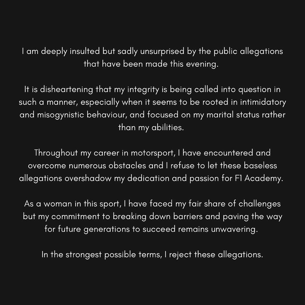 “We wholly reject the allegation in the statement and associated media coverage, which wrongly impinges on the integrity and compliance of our team principal.