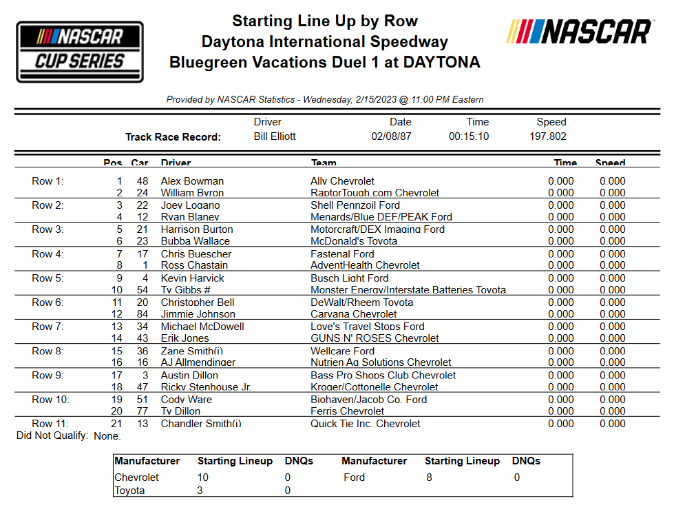 Amazing how fast Bowman always is in Daytona 500 qualifying.