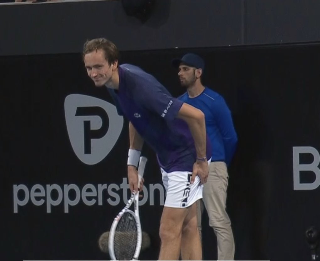 Joker tweaked his hamstring while up 5-2 in 1st set and took MTO. He’s playing on after winning the set.