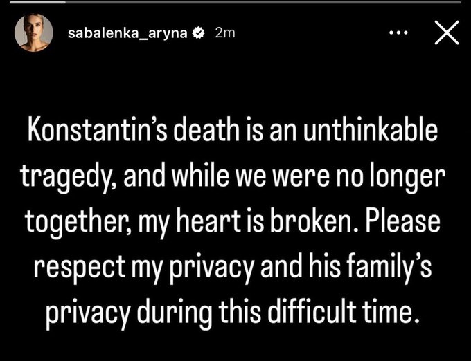 Sabalenka's boyfriend of three years jumped from his hotel balcony last night in Miami and killed himself. She was out practicing today and still plans on playing the tournament.