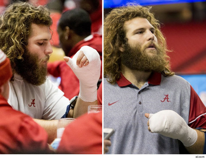 Alabama defensive lineman Dakota Ball showed up to media day at the Peach Bowl with a heavily bandaged left hand and only three fingers and a thumb sticking out. That's because one of his fingers was blown off with a shotgun during a hunting accident during the Christmas break, AL.com reported on Thursday.