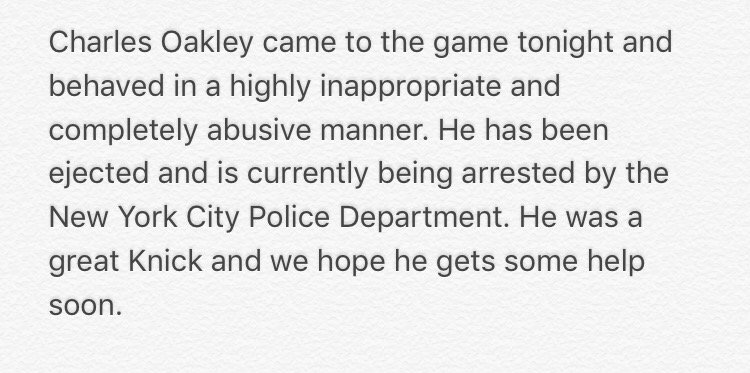 This. There is more believable truths about Dolan and his petulance. Oakley has been blackballed by the Knicks because of his beef with Dolan, and now it's evolved into this. Nothing is going to be done to Dolan, and Oakley while partially justified in his reaction, will be made to look bad no matter what in this situation. Dolan, What does he care if people think he's a dick. He's rich and owns the knicks. There ain't shite that can be done to him.