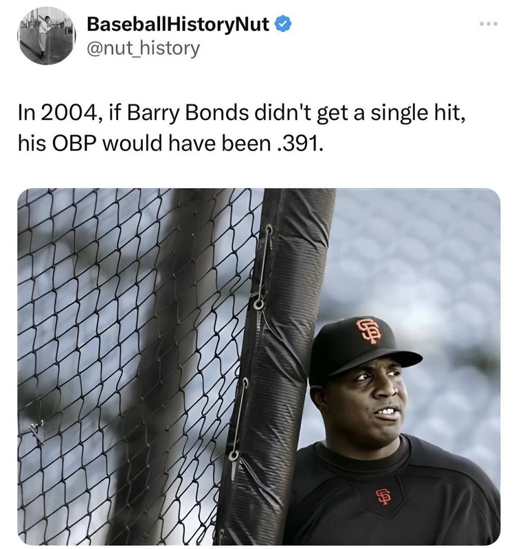 From 1993-2007, Barry Bonds had more intentional walks than the Twins, Rangers, White Sox, Orioles, A’s, Blue Jays, Royals, and Tigers.