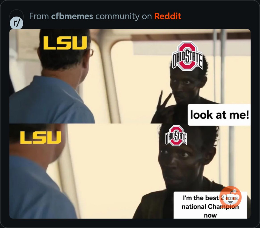 He's allowed to gloat, this site is still clutching Burrow Pearls in the NFL and never stopped talking about 2019 LSU for years, as if they were still the Champs, 5 years later.