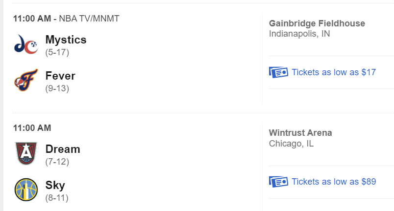 One (of countless) example’s from a few weeks back, the Washington team hosted back to back home games against the Chicago Sky and the Indiana Fever. The attendance for the Chicago game was 10k and the attendance for the Indiana game was over 20k.