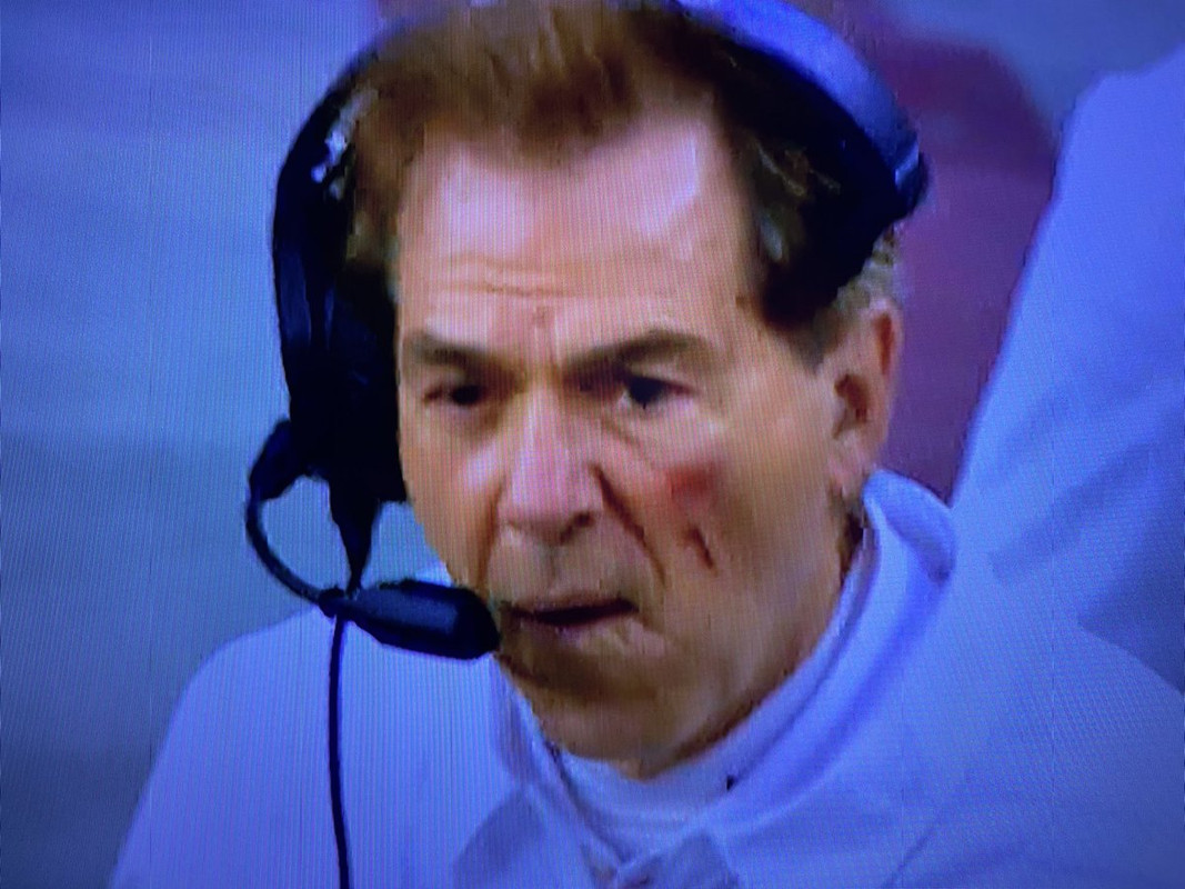 Why is Saban bleeding from his face?