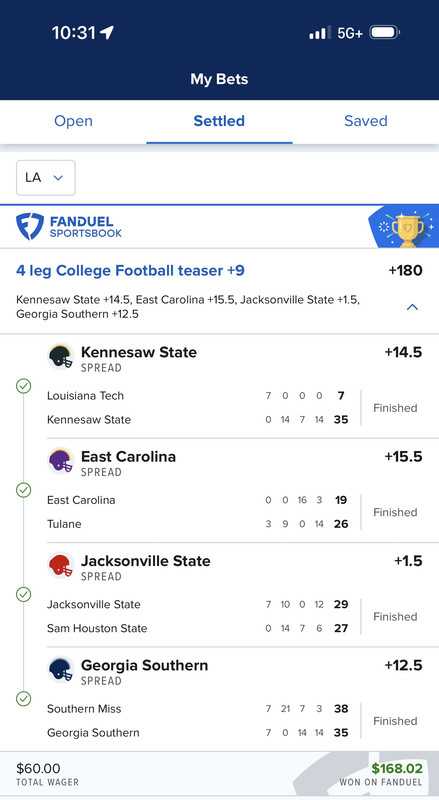 The over 66.5 is the play in the North Texas game.