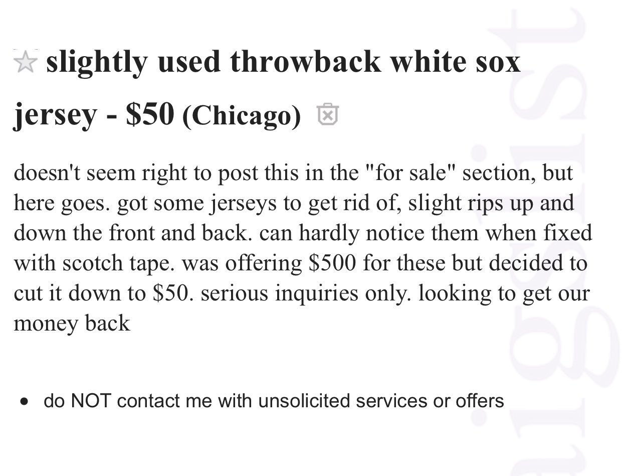 Cubs bleacher fans gonna be sporting some cut up jerseys next when the Sox come to Wrigley