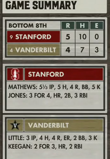 Stanford has the bases loaded with 2 outs top of 8th