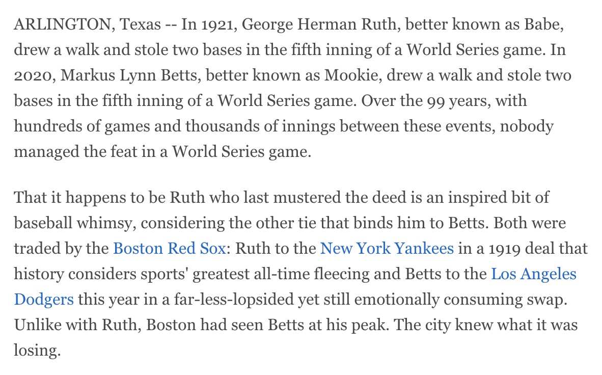 That was such a special ground out by Mookie. The way he works the count and then gracefully places the ball on a deliberate path and gallops down the line without hesitation reminds you that he's one of the greats in our game.