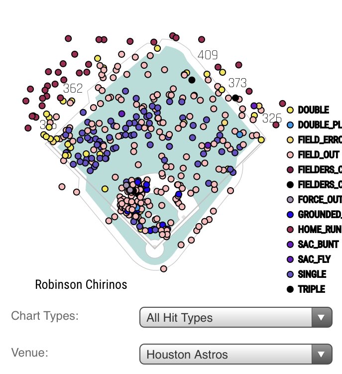 Here is Robinson Chirinos’ spray chart from 2017-2018 overlayed on Minute Maid Field. It’s not scientific, but it’s fun.