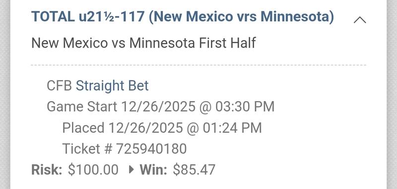 I just bet the under on the Sun Bowl first half. Gotta make some things happen when the Chips are down mate