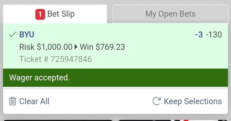 Trying to convince my partner to okay a significant BYU moneyline play as well.