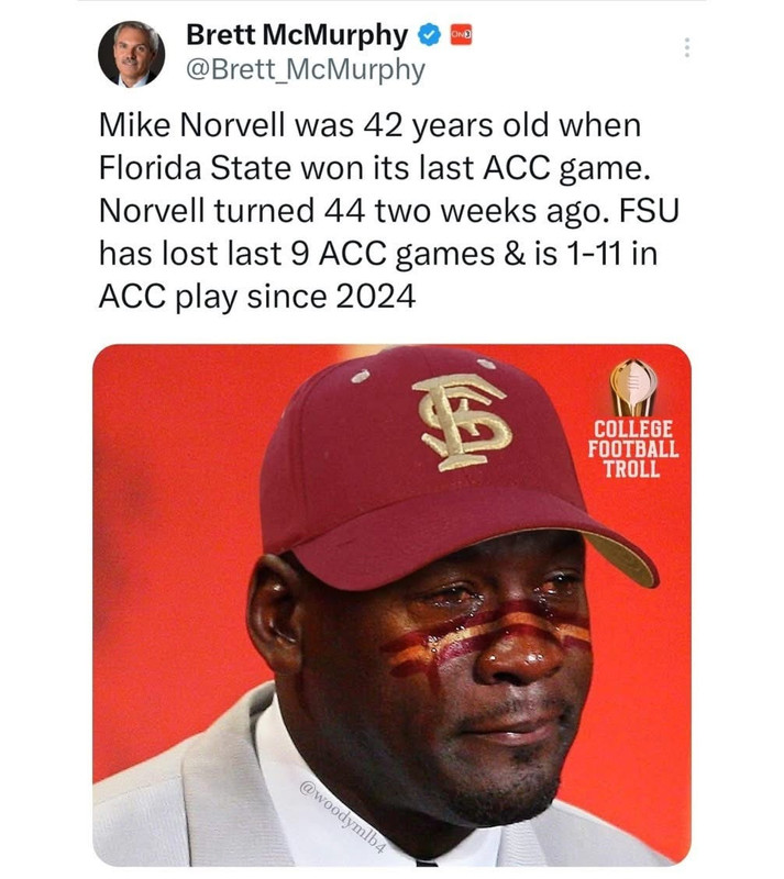 Possibly surprising stats, FSU is 41-43 in ACC play with only one ACCCG appearance (win in 2023) since Jameis Winston's last season in 2014. Somehow, they are 11-7 vs other power conference teams in that time, and 0-3 vs Notre Dame.
