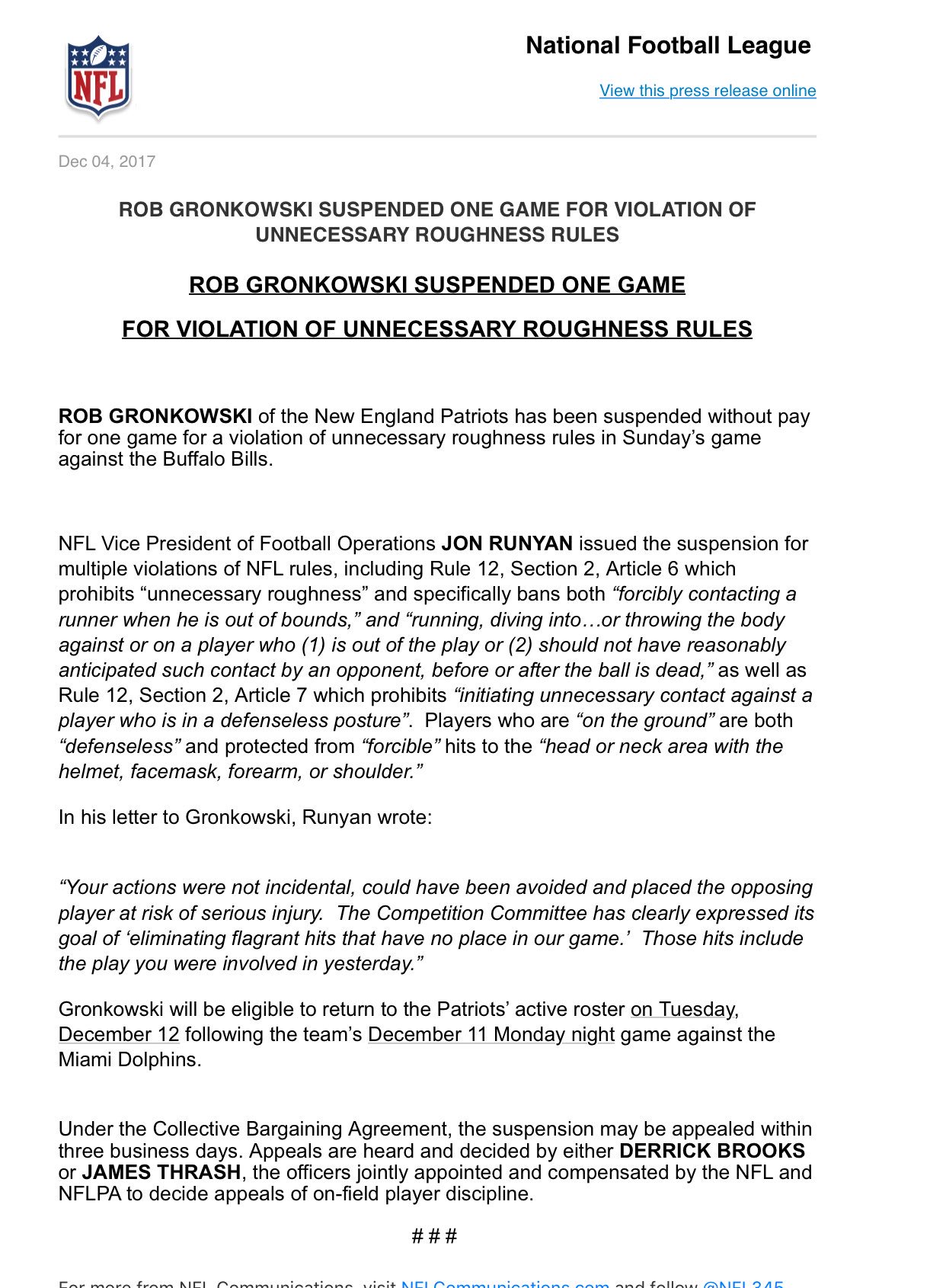 ESPN just did a push notification announcing a 1-game suspension for Gronk