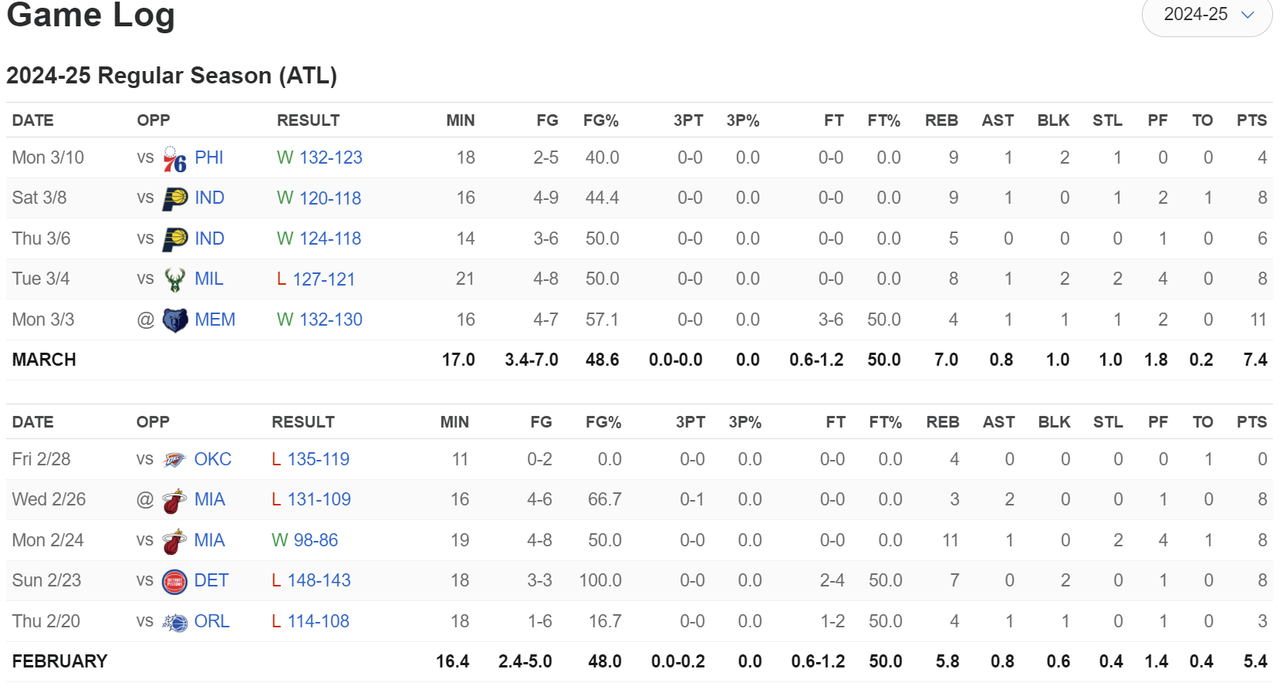 Since someone disagreed, here are his minutes the last 2 months of the season that he played.