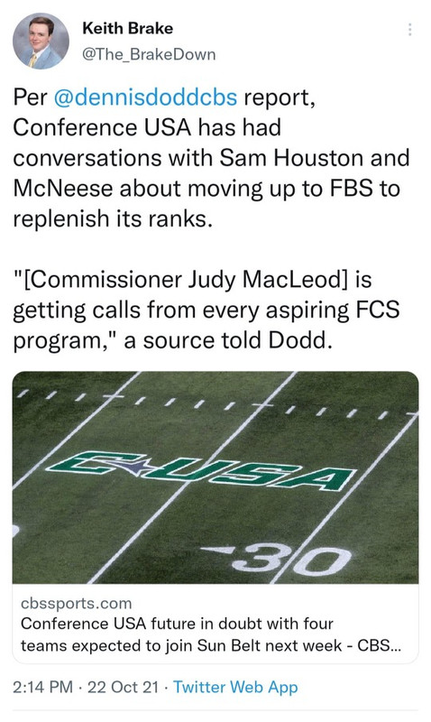 And after I posted, I see this. You've got to be shitting me. CUSA is desperate as hell if they are calling McNeese.