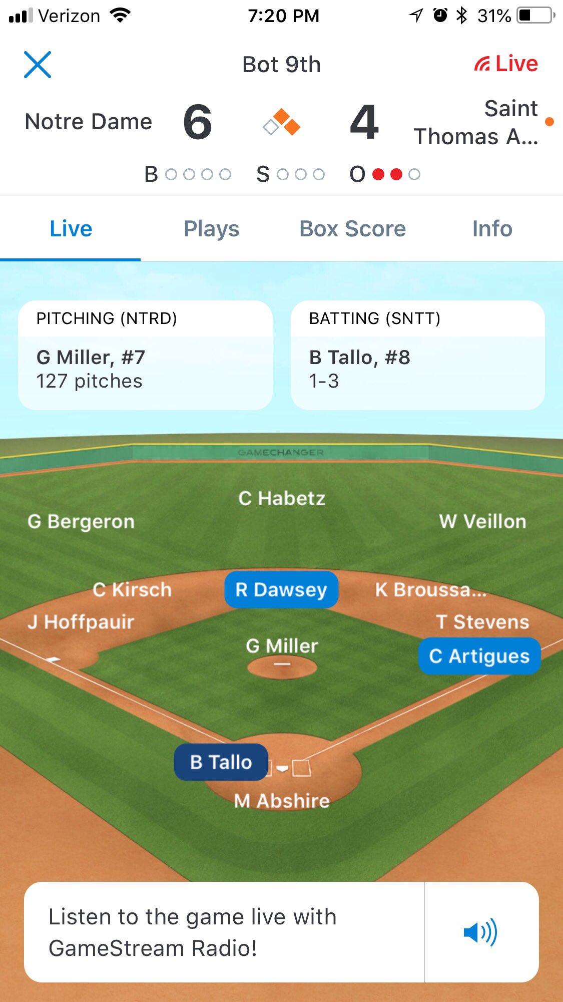 Was at the game, great comeback by ND. Gave up 4 runs in the bottom of the first and came back to win it in 9 innings.