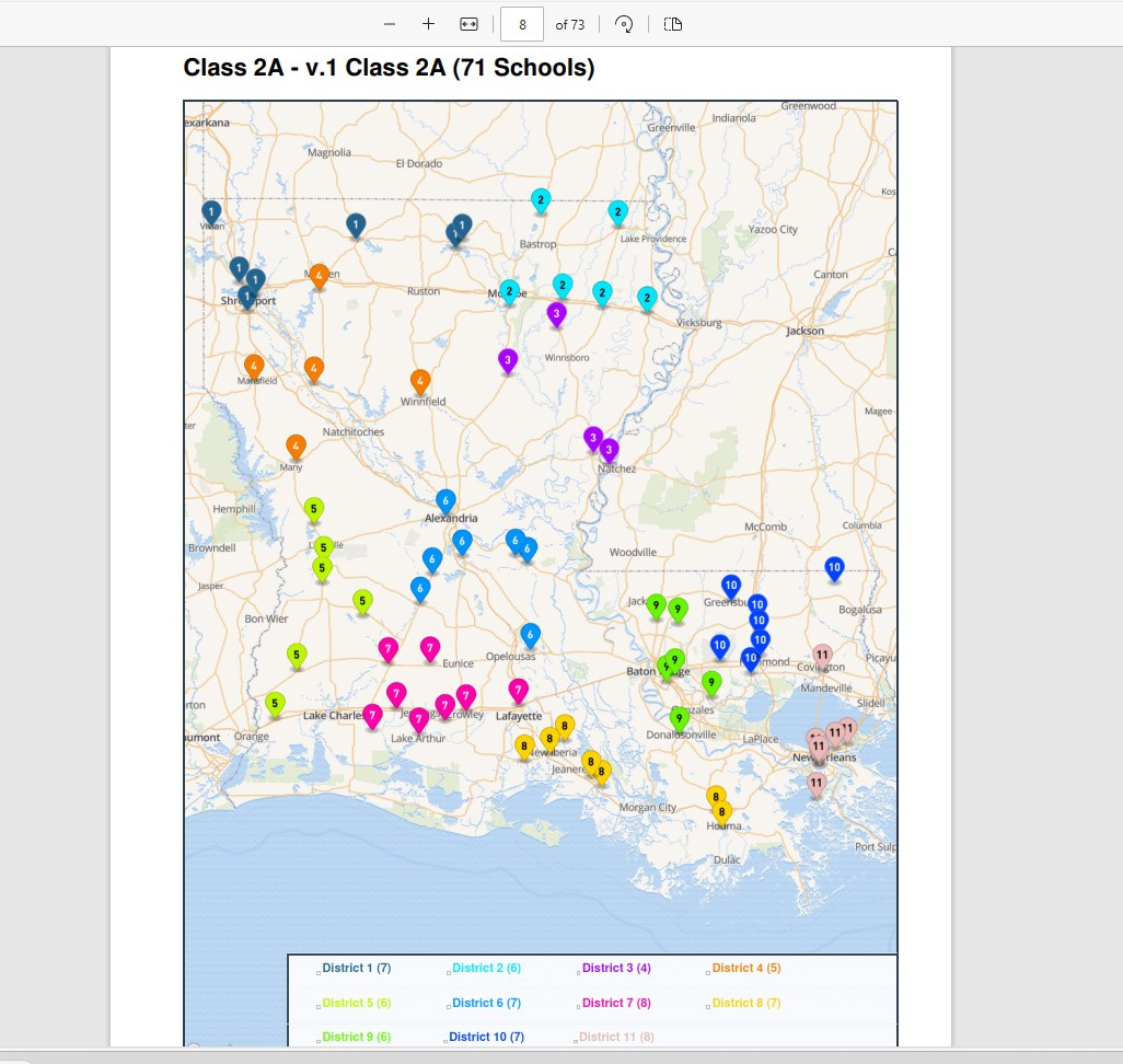 looks like they tried to put the schools close geographically...some are closer than others. That team south east of monroe in district 3 got to screwed too, they have them travelling just west of Natchez when they could have been included in the district in along I20 east of monroe.