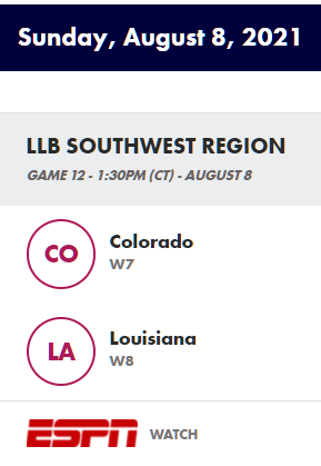 re: Little League Regionals - Championship Saturday - times & TV channel for Saturday Aug 14
