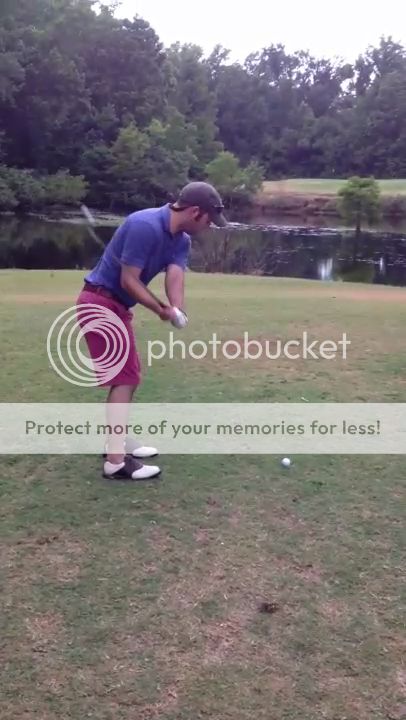 Here's a shot with my 8 iron... Pay no attention to the way I was aiming.. Although the ball did go straight I didn't realize I was aiming for the trees