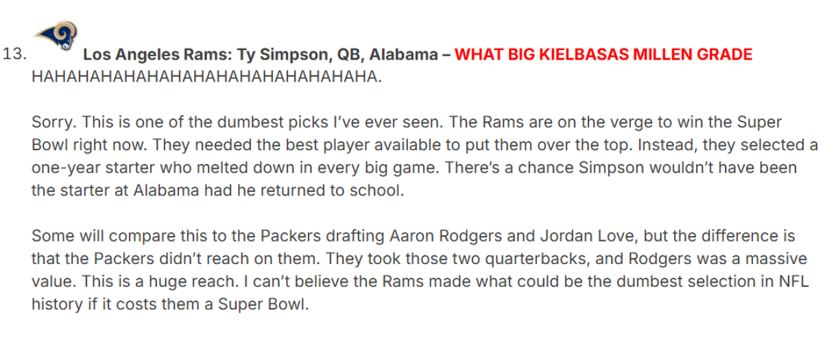 Rams going with the Michael Penix-type pick is certainly a choice.
