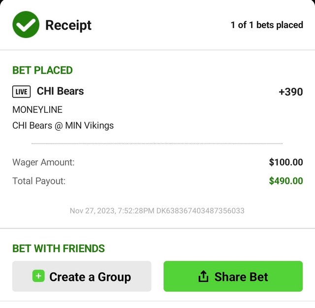 Bears moneyline +390
