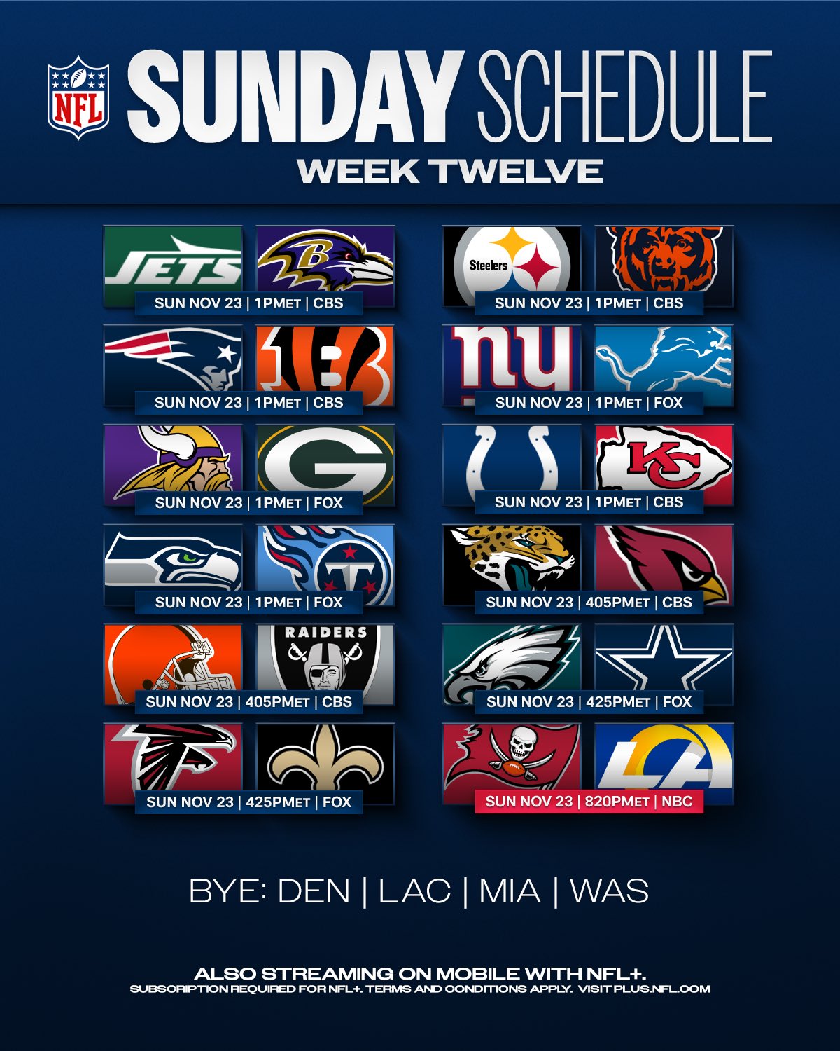 NFL Various Games - Week 12