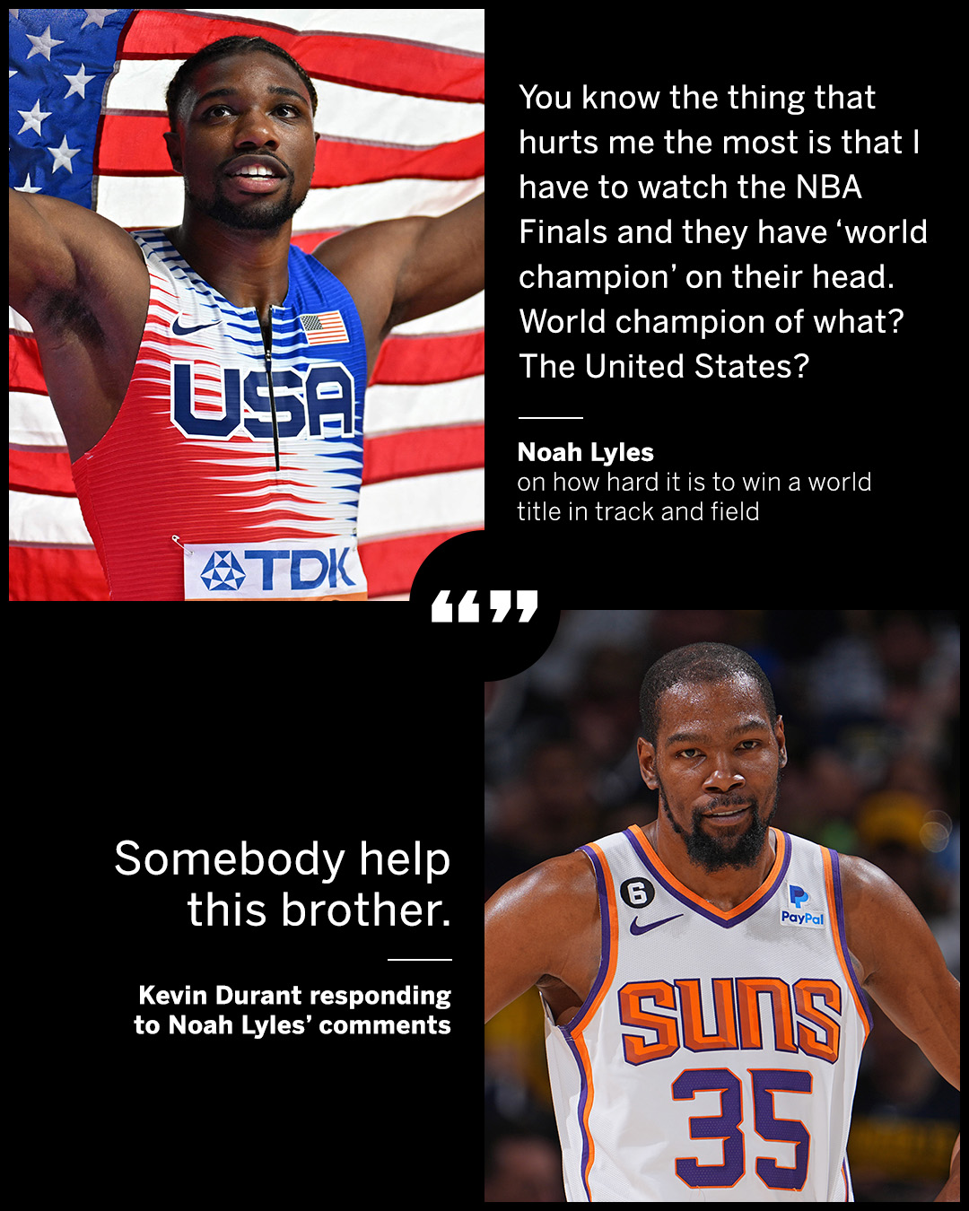 Noah Lyles, world champion, asks why the NBA calls themselves world champs