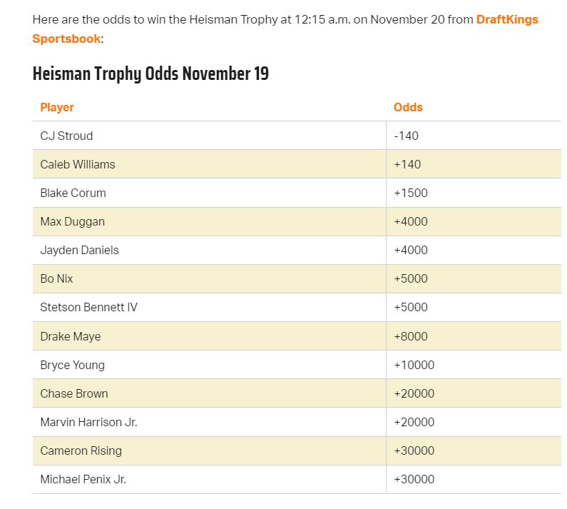 Caleb Williams should win it if USC wins out and makes the CFBPlayoffs.