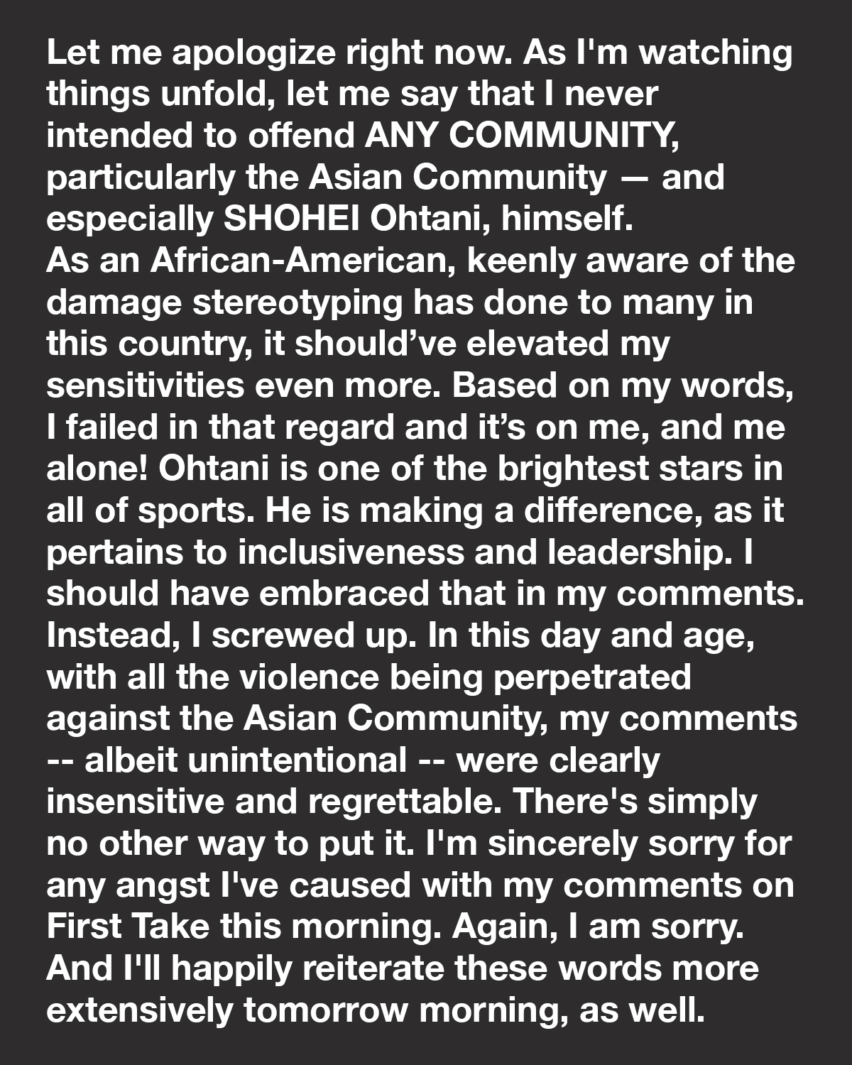 Well he’s apologizing, just like Rachel Nichols had to do… so…