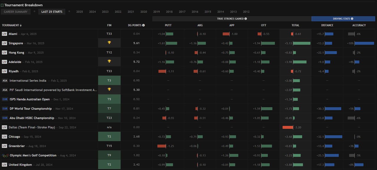 Any player, Any shot on the app isn’t working great for me for tracking players live. A little better on desktop. It’s usually better later on after the round