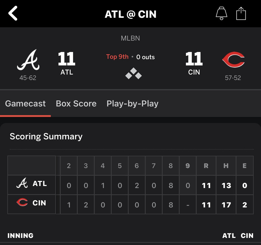 The 8th inning of the Reds/Braves game was insane. Both teams scored 8 runs