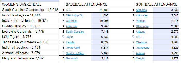 Like I said earlier, it is factually indisputable that women's basketball is a bigger national draw than college baseball. But the knuckle-draggers can't/don't want to comprehend that.