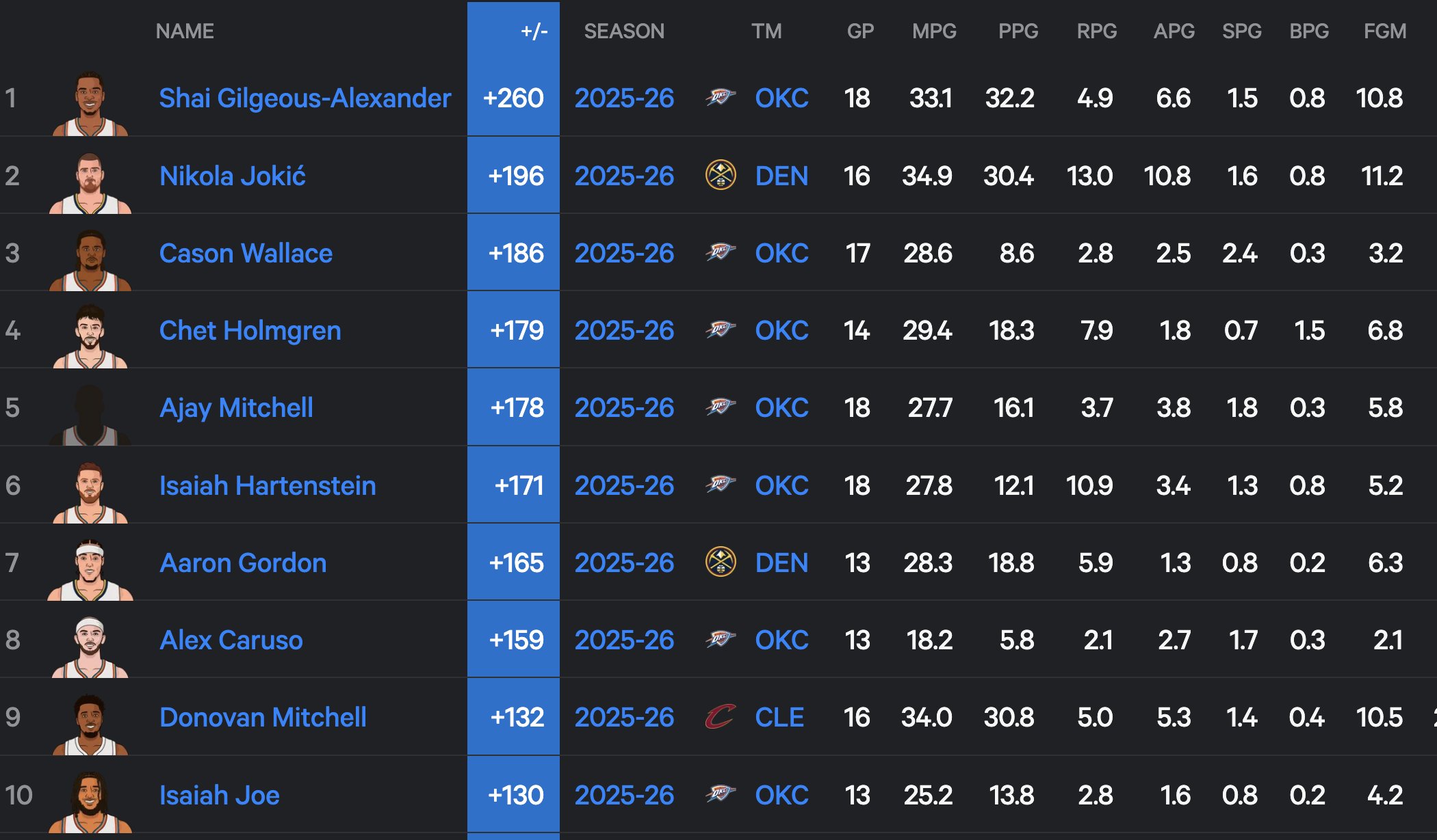 Top 10 in plus/minus. 7 from one team