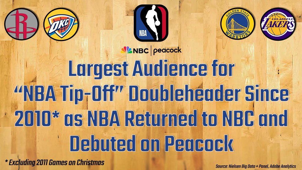 Thrilling NBA Tip-Off Doubleheader Averaged 5.6 Million Viewers on NBC and Peacock.