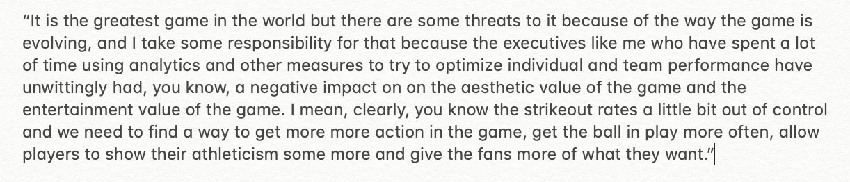 Theo Epstein said he was interested in a baseball job that allows him to help address some of more existential threats to the game. So I asked him what he thinks those are: