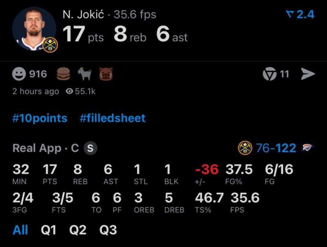there's absolutely no reason why Jokic should have more than 30 minutes in this game