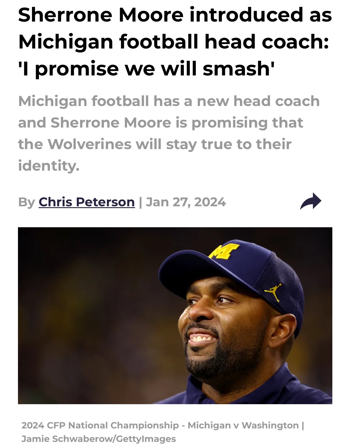 You know, when he was hired, I had the "DEI moron" idea in the back of my head, but I thought -- he's popular with the players, if he's a good dude, he just helped them win a natty, give him a chance.