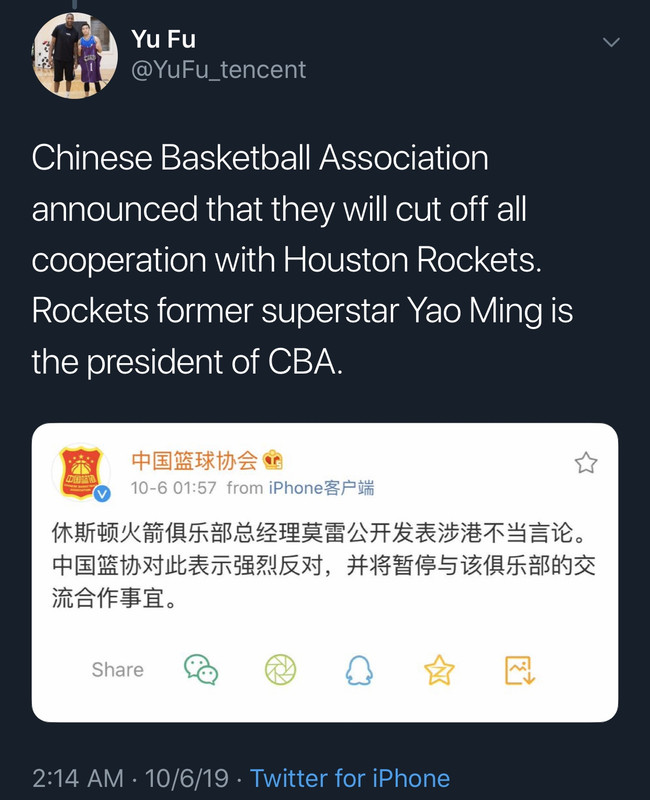 The controversy comes from the fact that Morey’s tweet blew up in China