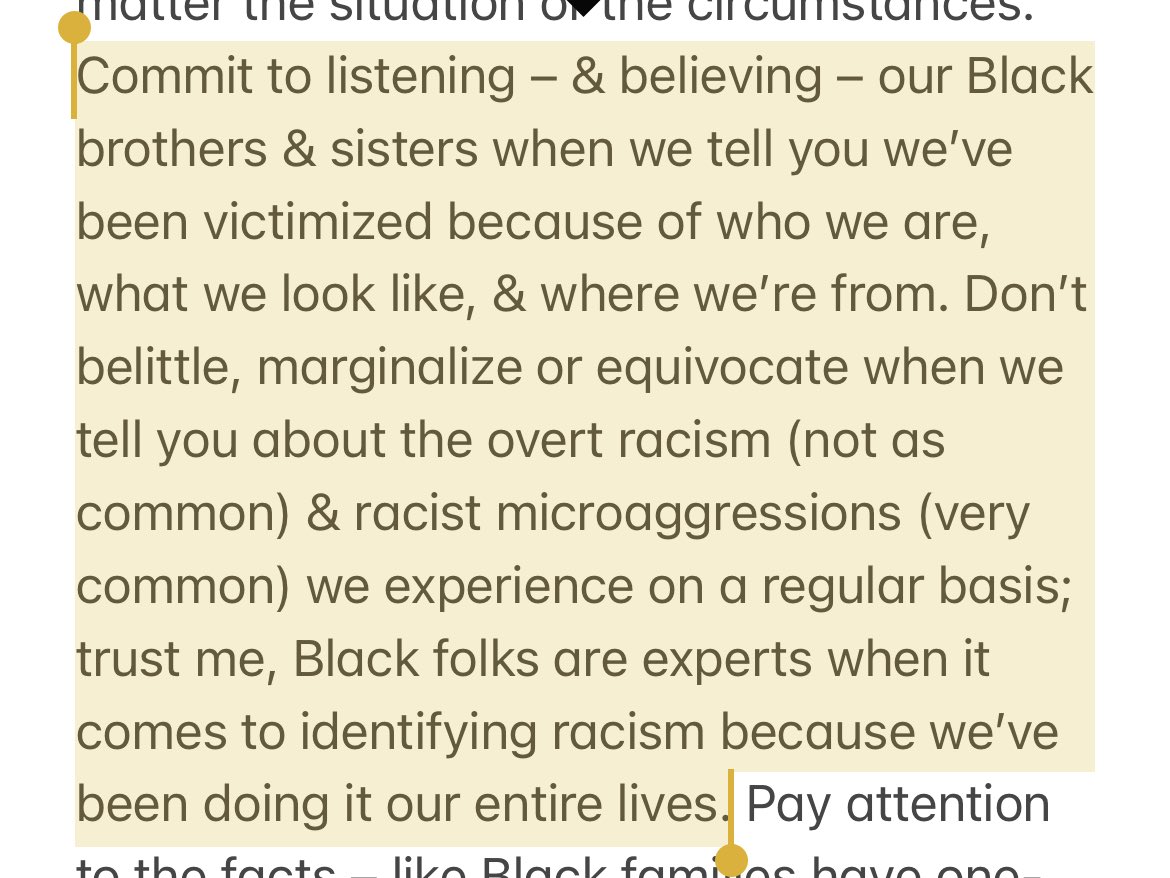 I touched on it last night that this would be the shift once the truth became clear. Truth doesn't matter, right? It's not a relief that no one shouted the n word so boldly. Doesn't matter that he didn't say it. Because he COULD have. The guy not saying it doesn't mean America isn't an irredeemably racist place. It is. That's why it's so believable that he said it. If you want to leave it af "this didn't happen" you're minimizing the fear and the pain POCs have to live with.