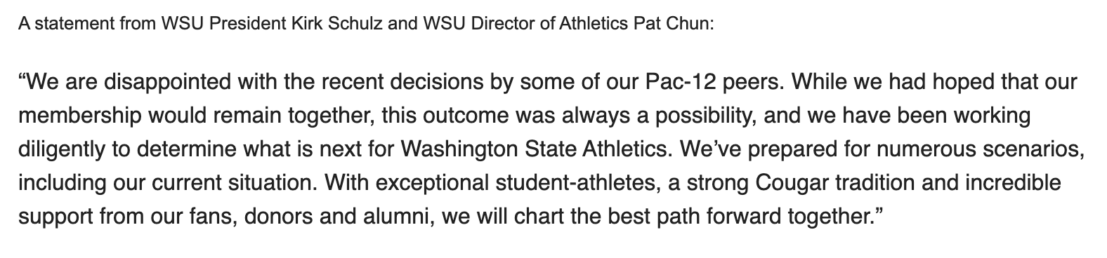 re: Update: Oregon & WA to the BIG. Utah, ASU, AZ apply to the Big 12. RIP Pac 12