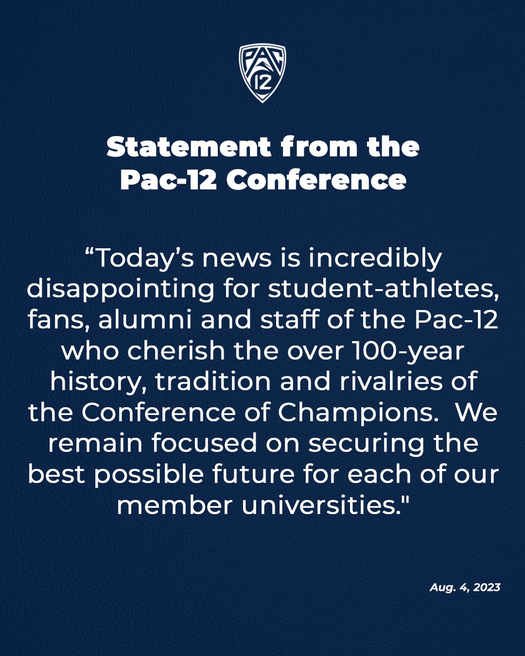 Statement from the Pac-12 just released: