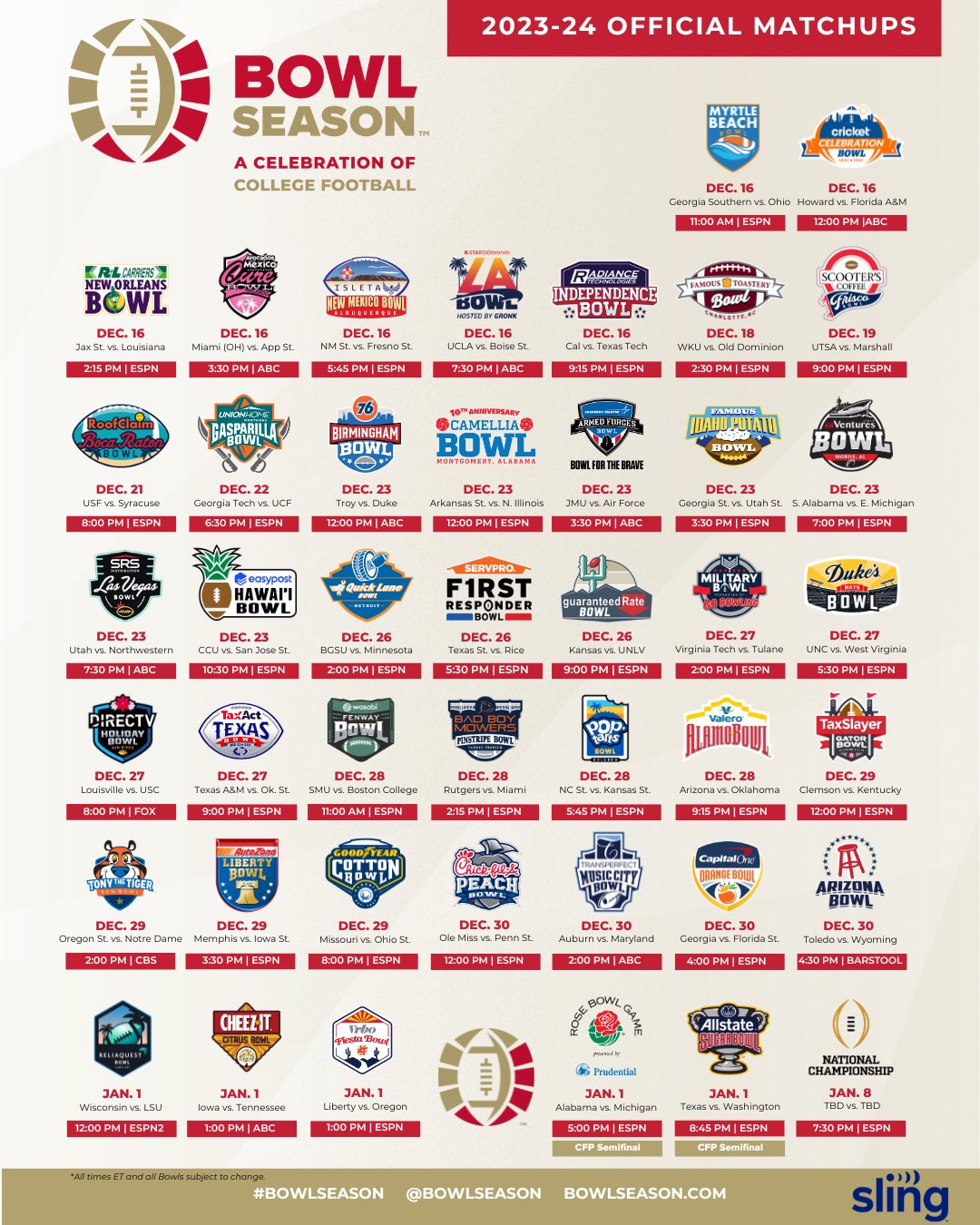 By the way, here are a couple of good bowl schedule images if the OP or admins want to add them the beginning of the thread:
