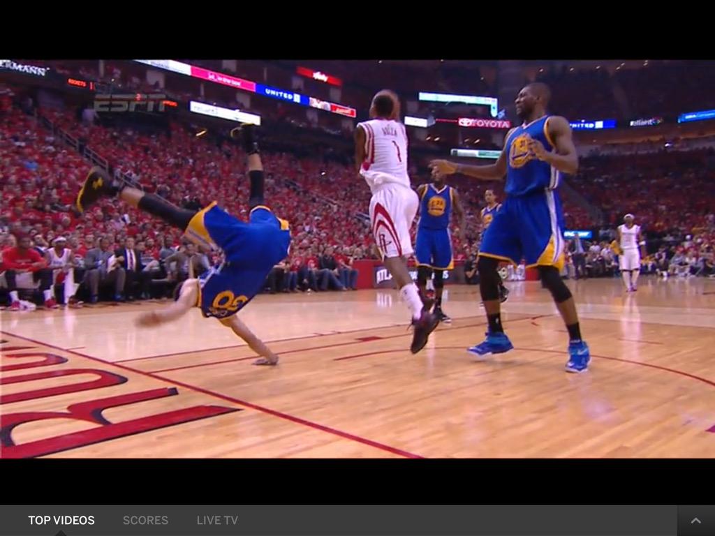 kind of looks like somebody just gave Curry a Razor's Edge finishing move by the way he's falling