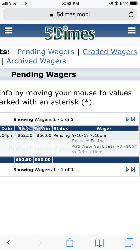 i missed getting NYJ on live line at + 9 1/2 by seconds. So i had to wait for td and got them at + 6 1/2